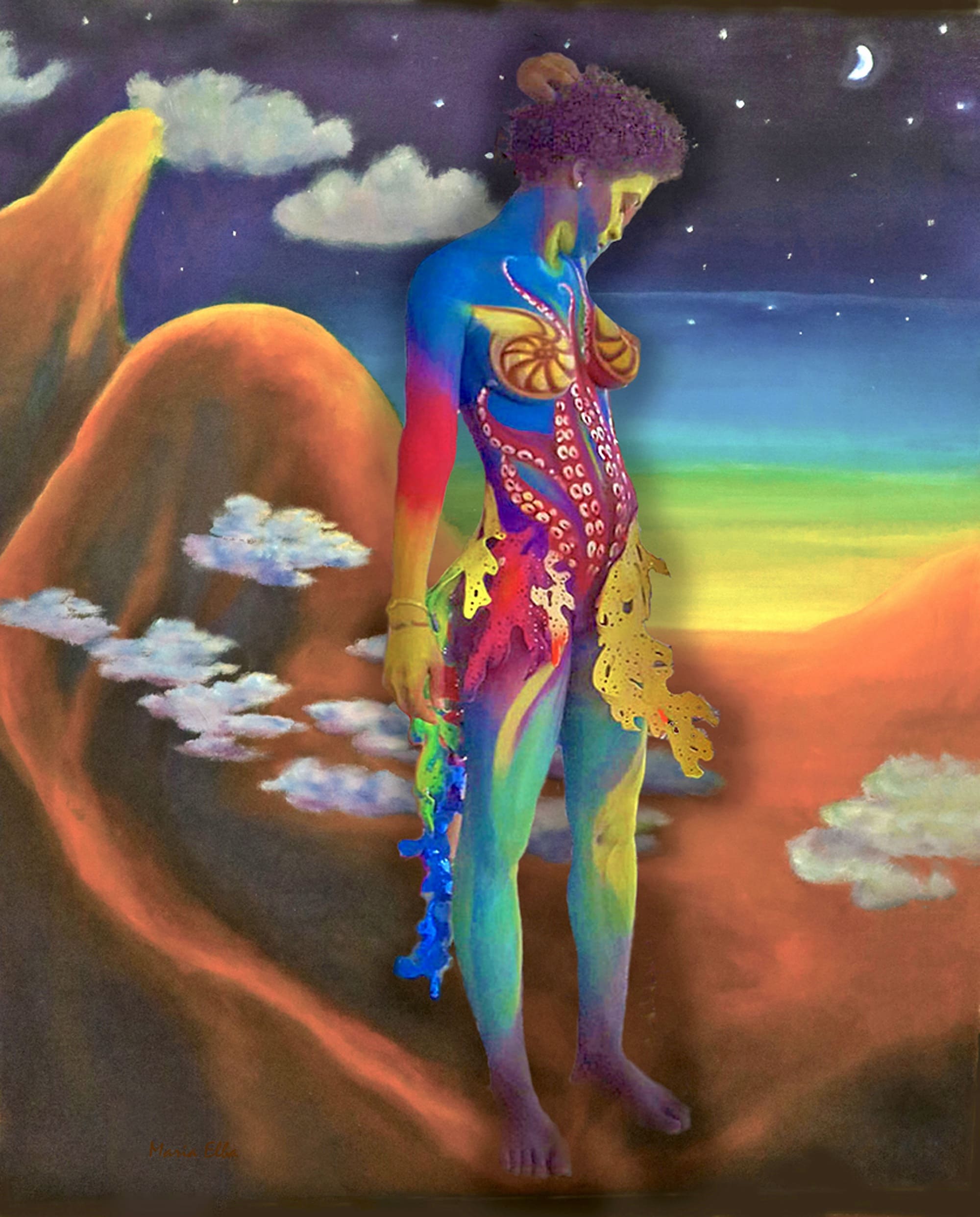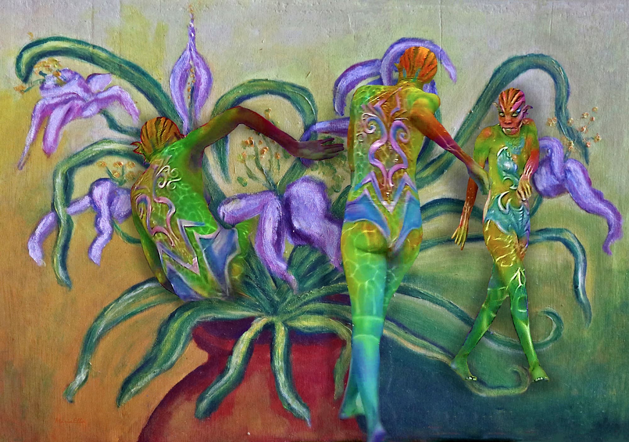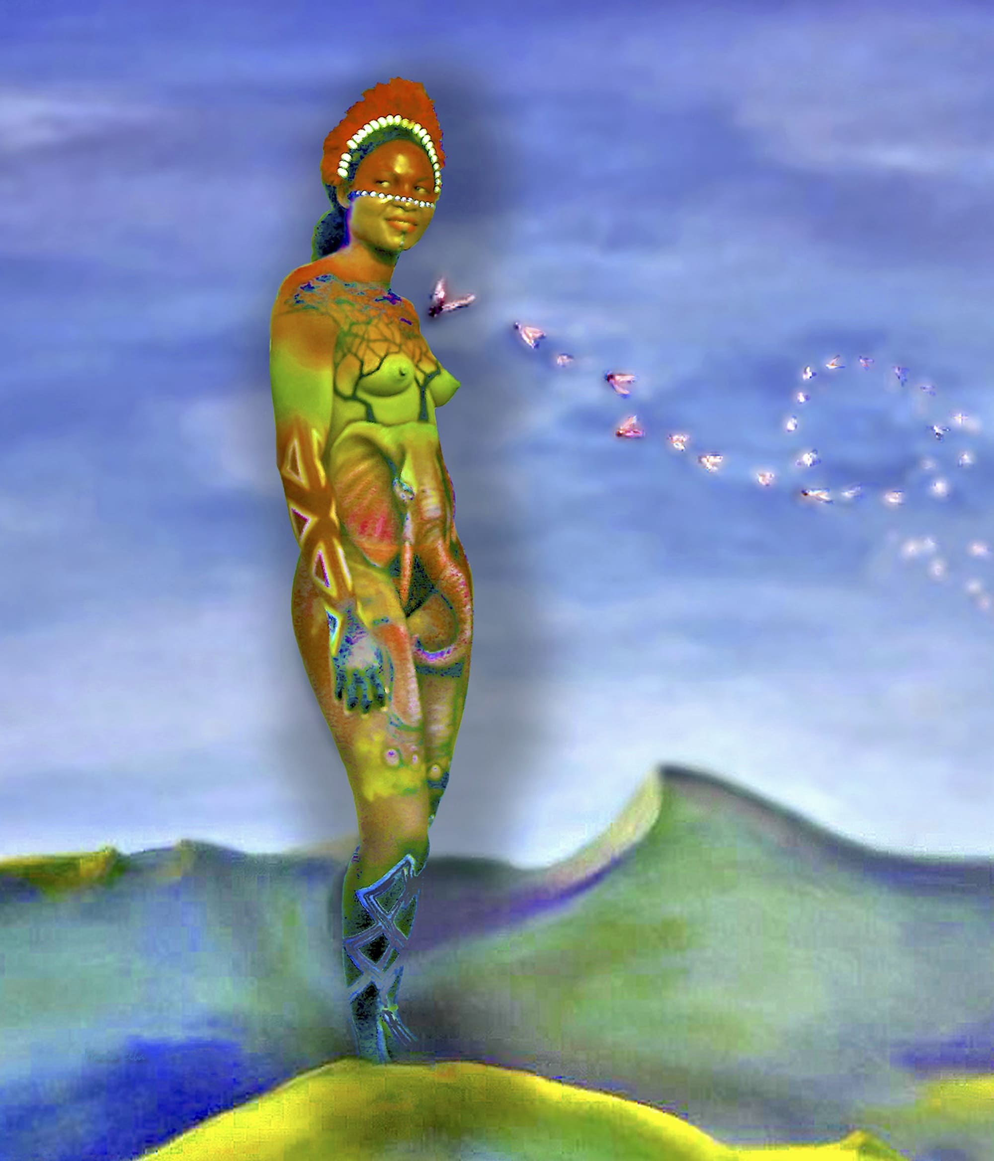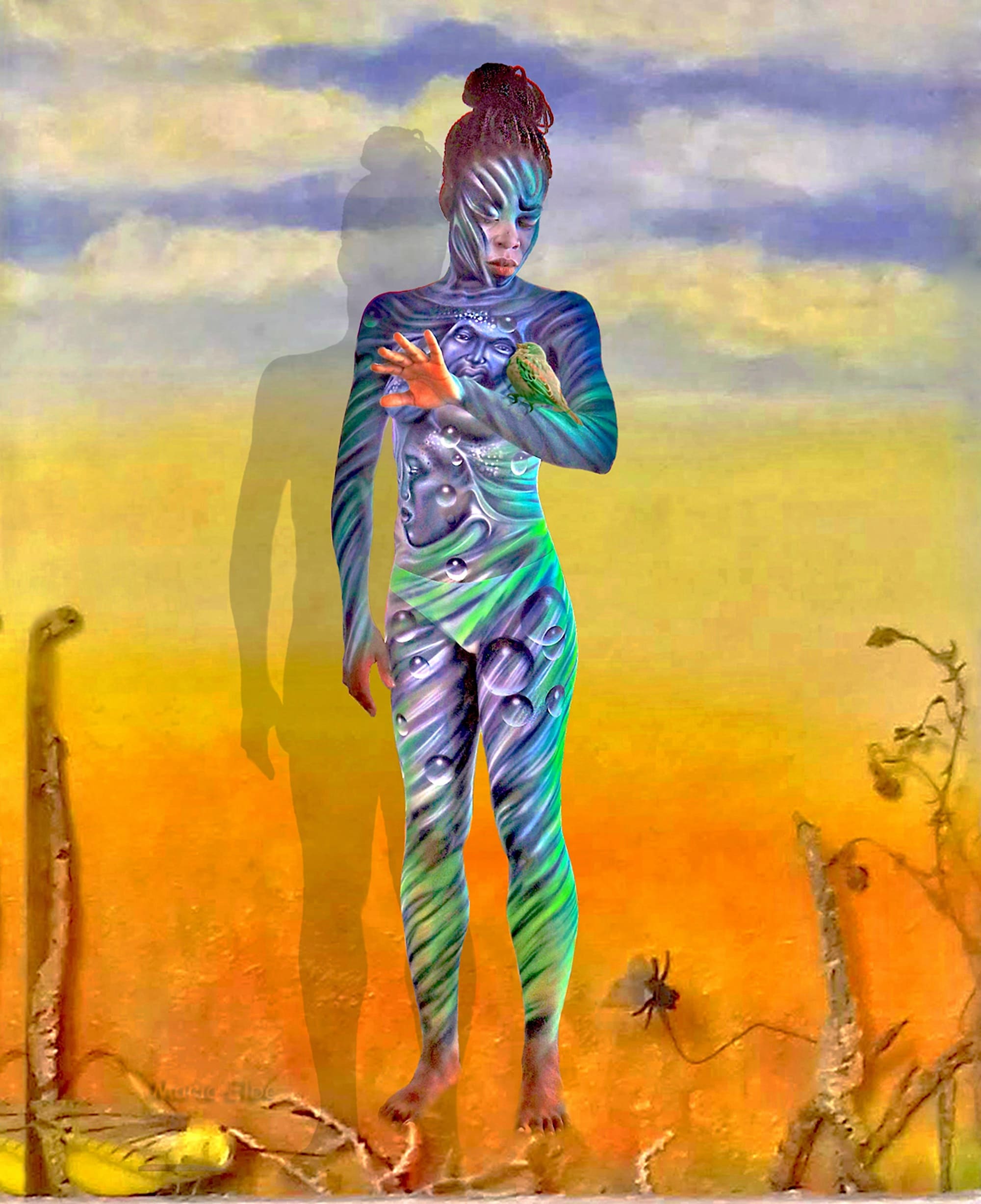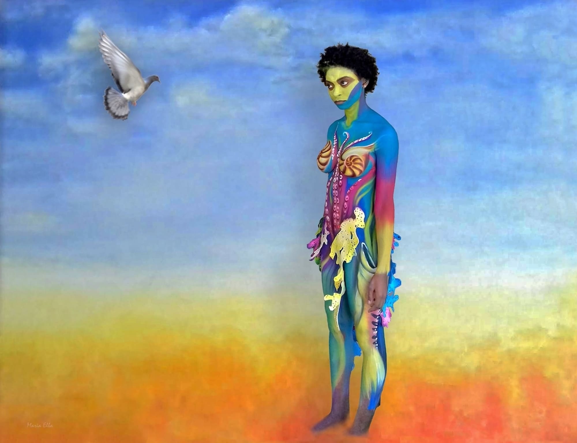 Selección de mi ultimo trabajo fotográfico tomadas en el festival Bodypainting en guinea ecuatorial, (enero del 2020) con ellas formo una nueva composición, uniéndolas a mis pinturas y algunas fotos que hacen de fondo