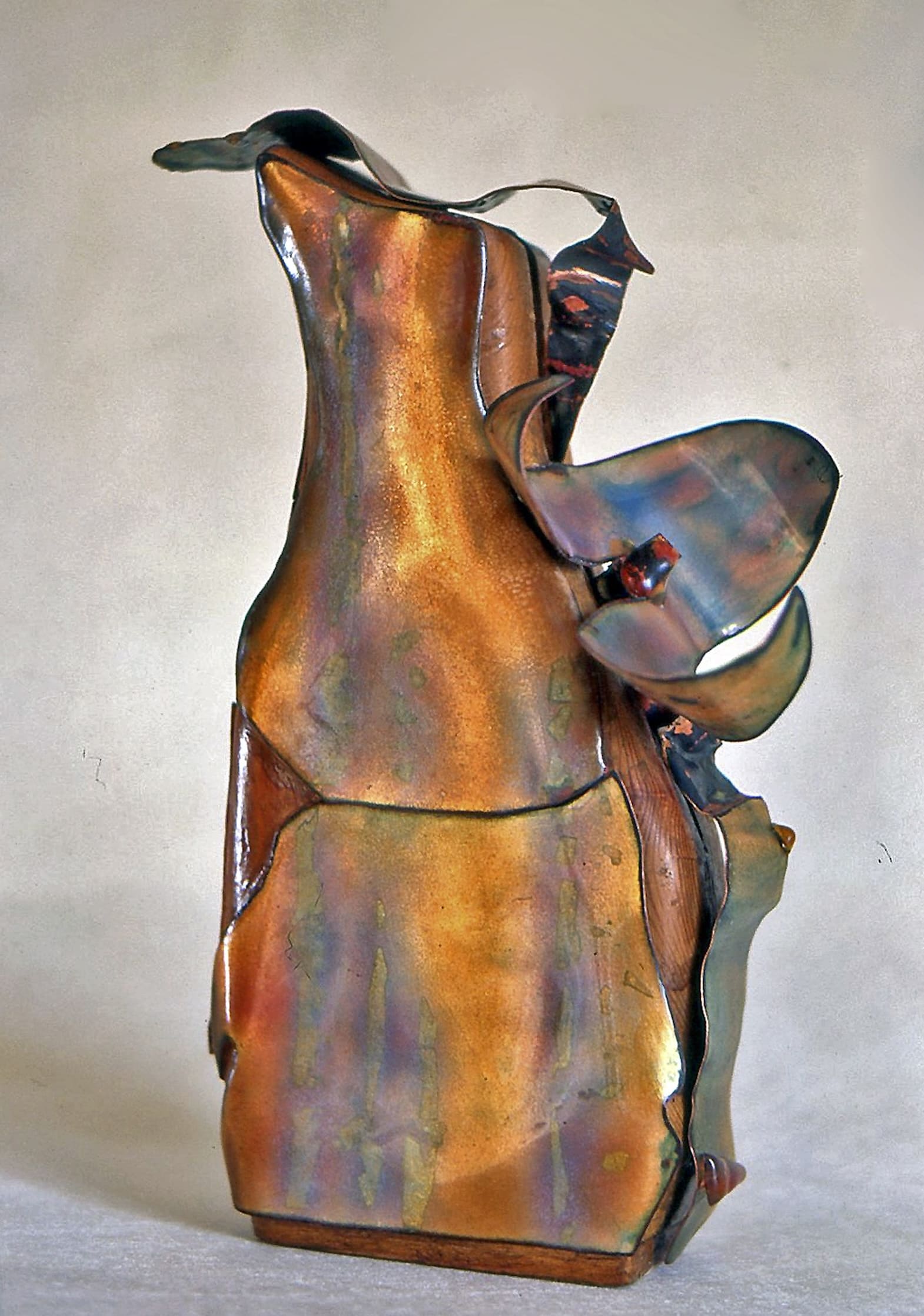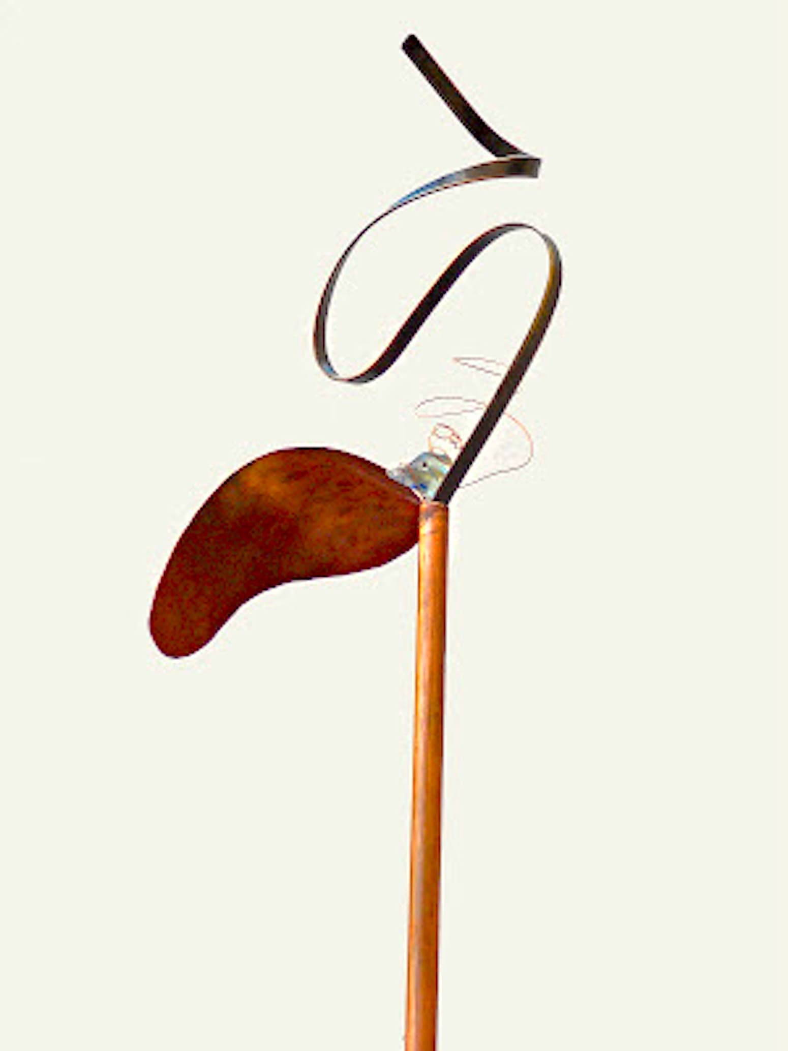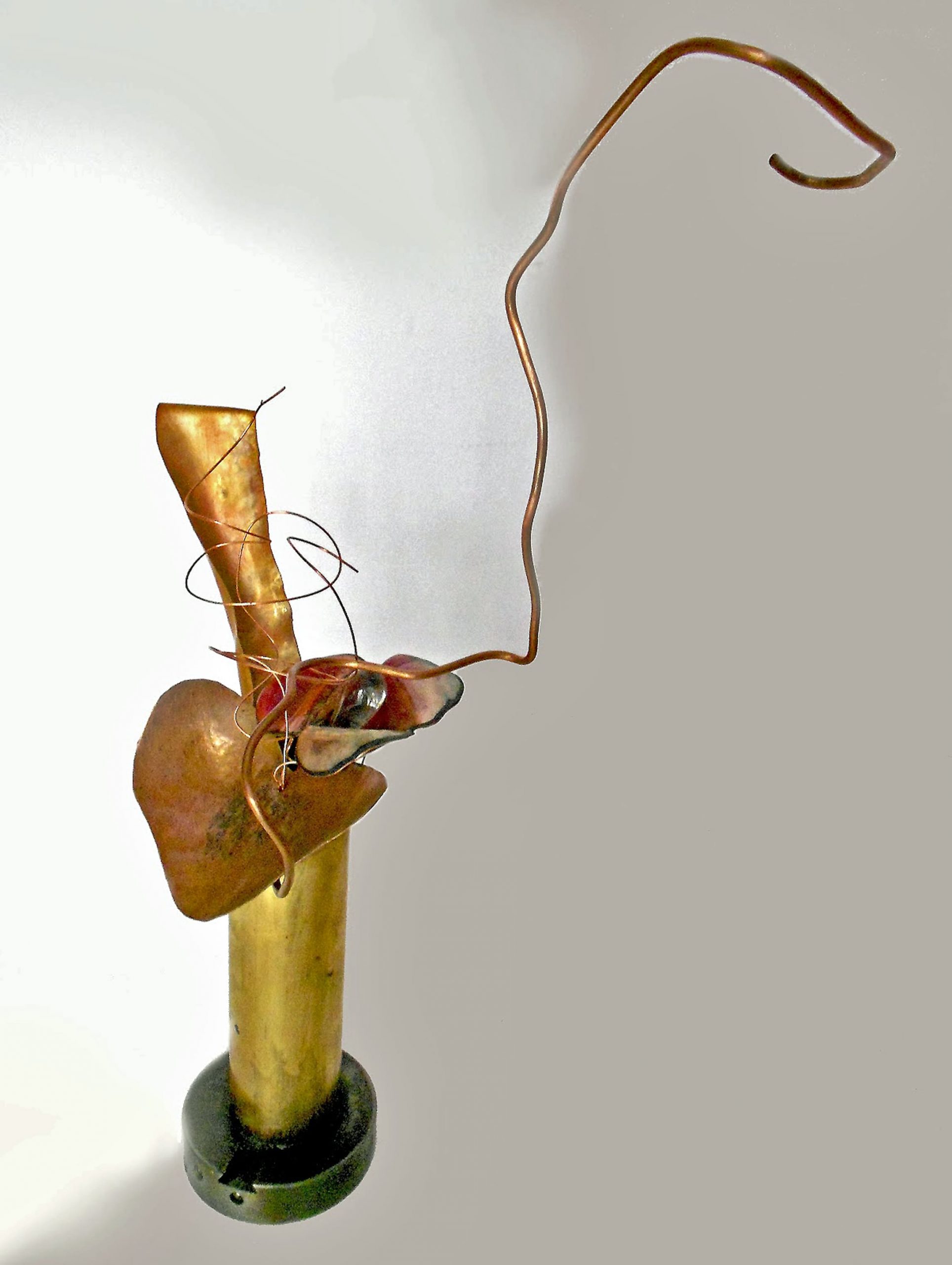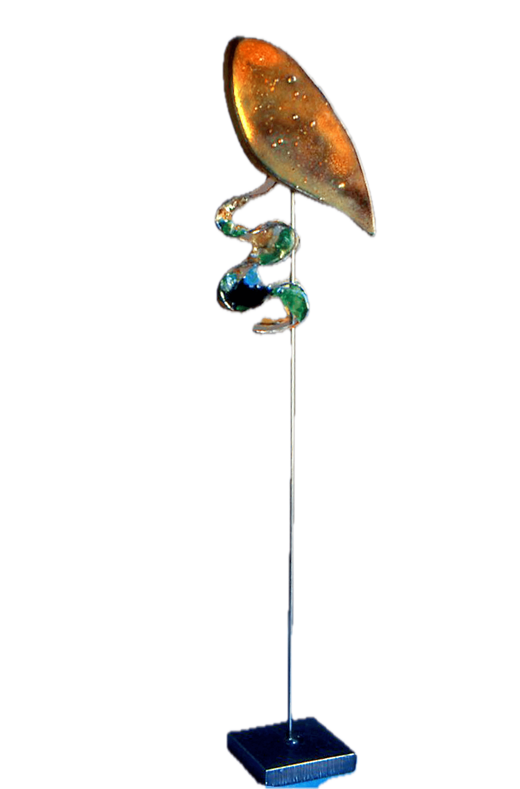 Nº 22. Cambio de aire esmalte sobre cobre y sobre base metalica Altura 98 cm.1994
