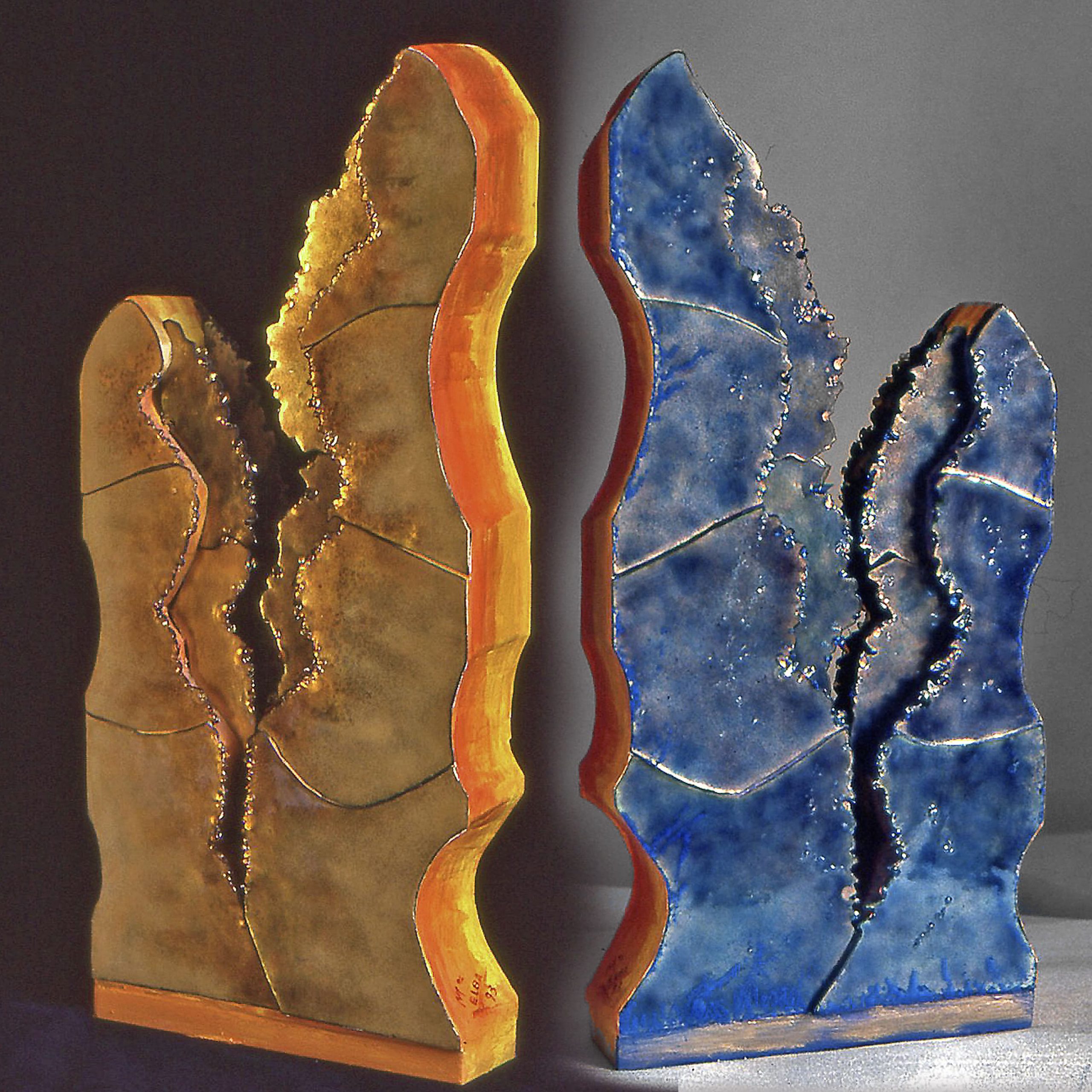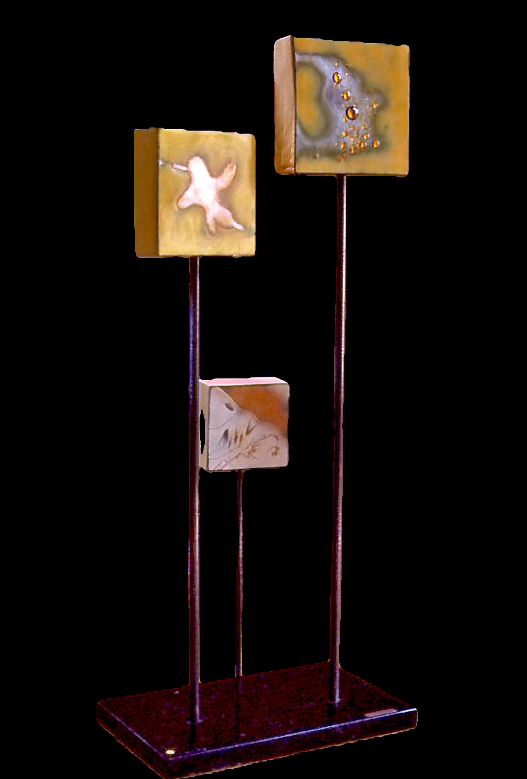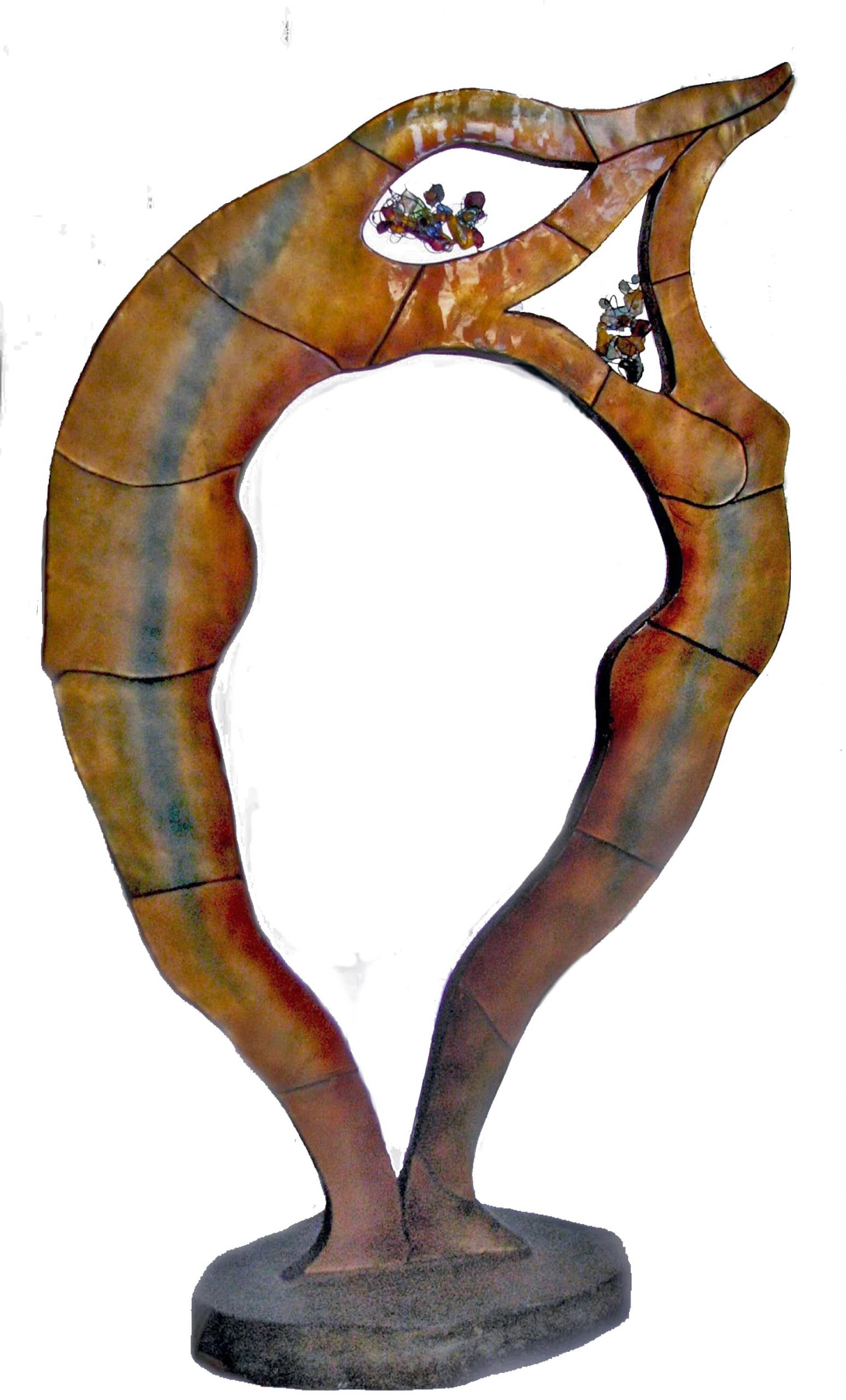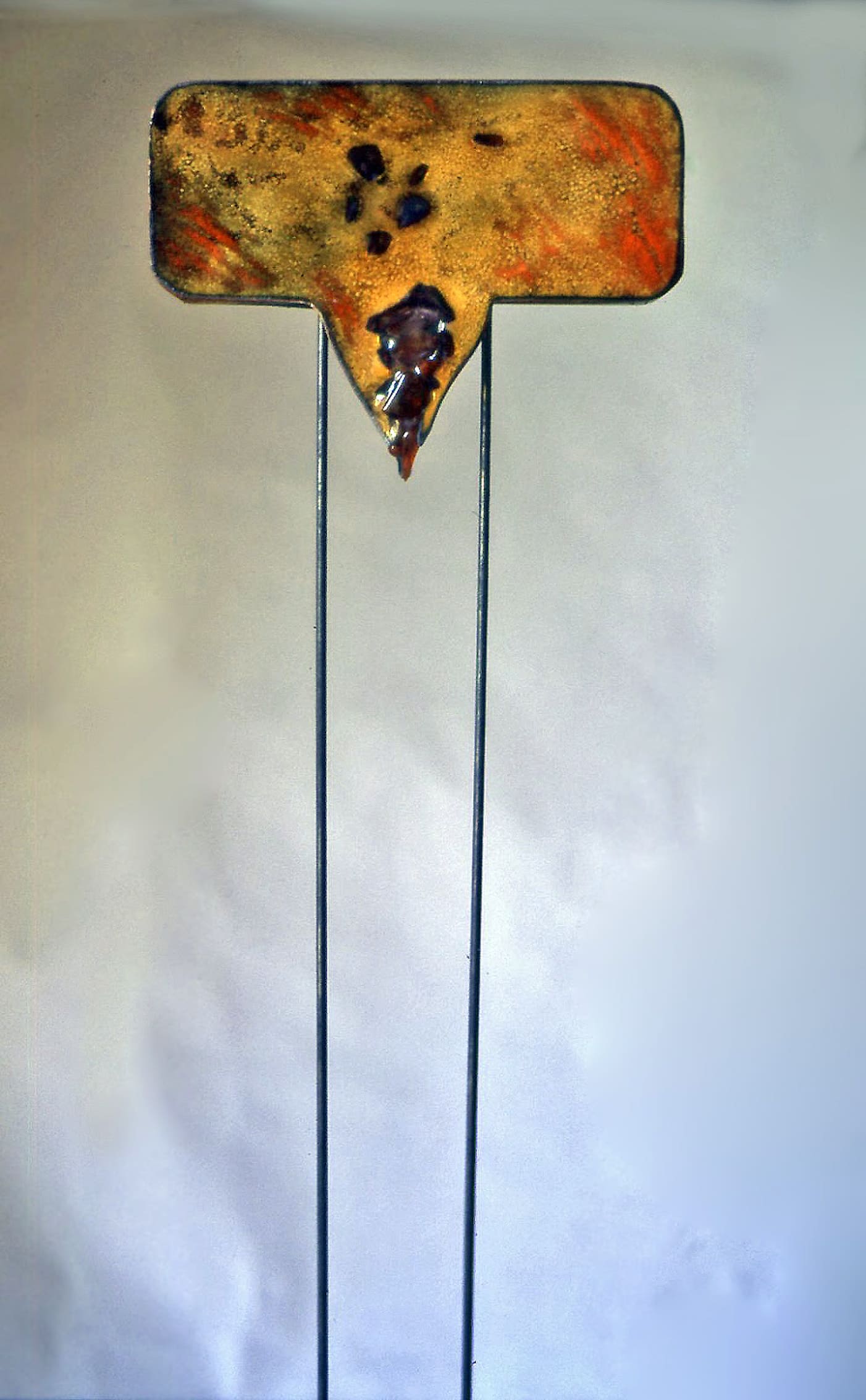 Nº 22. Cambio de aire esmalte sobre cobre y sobre base metalica Altura 98 cm.1994