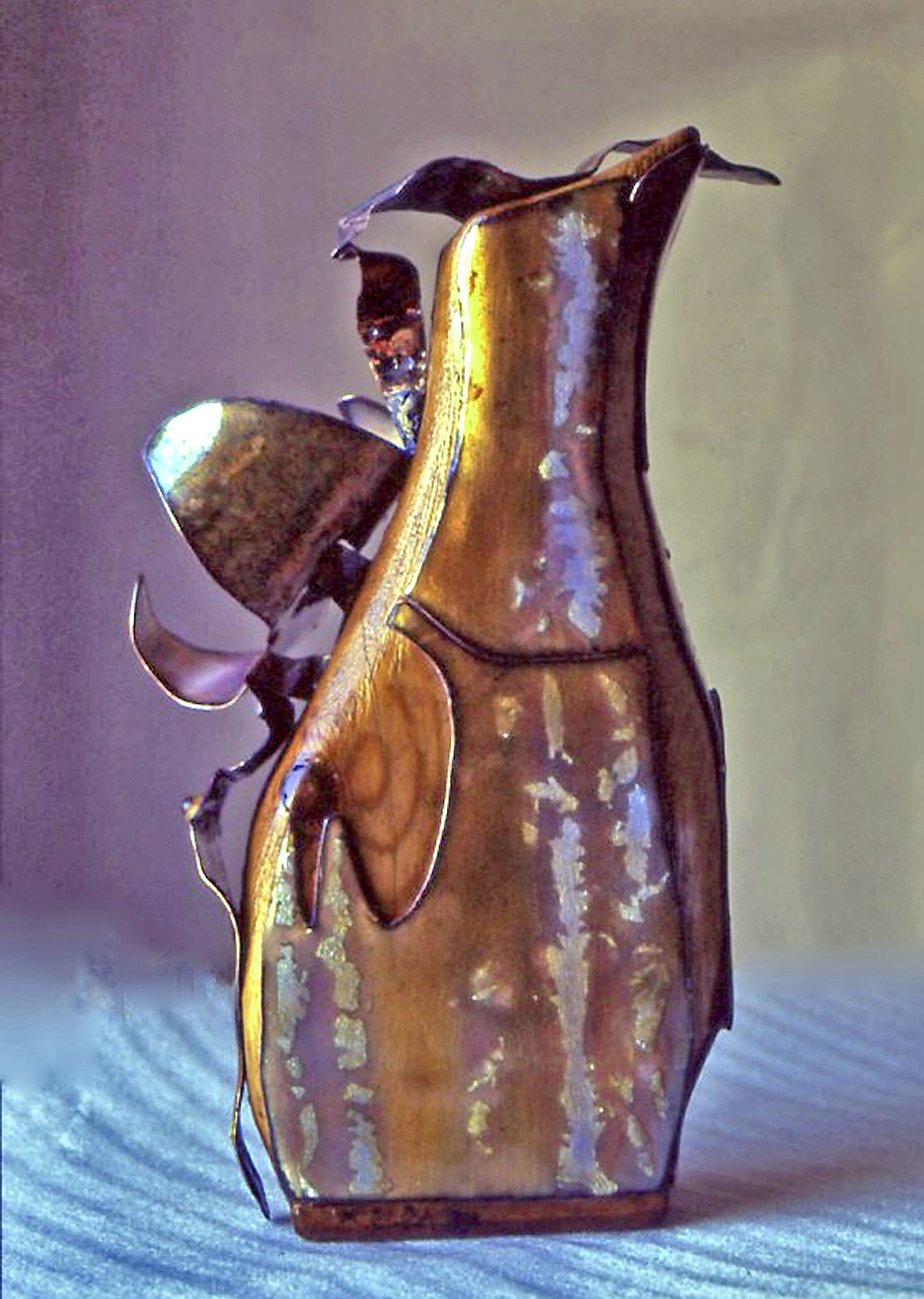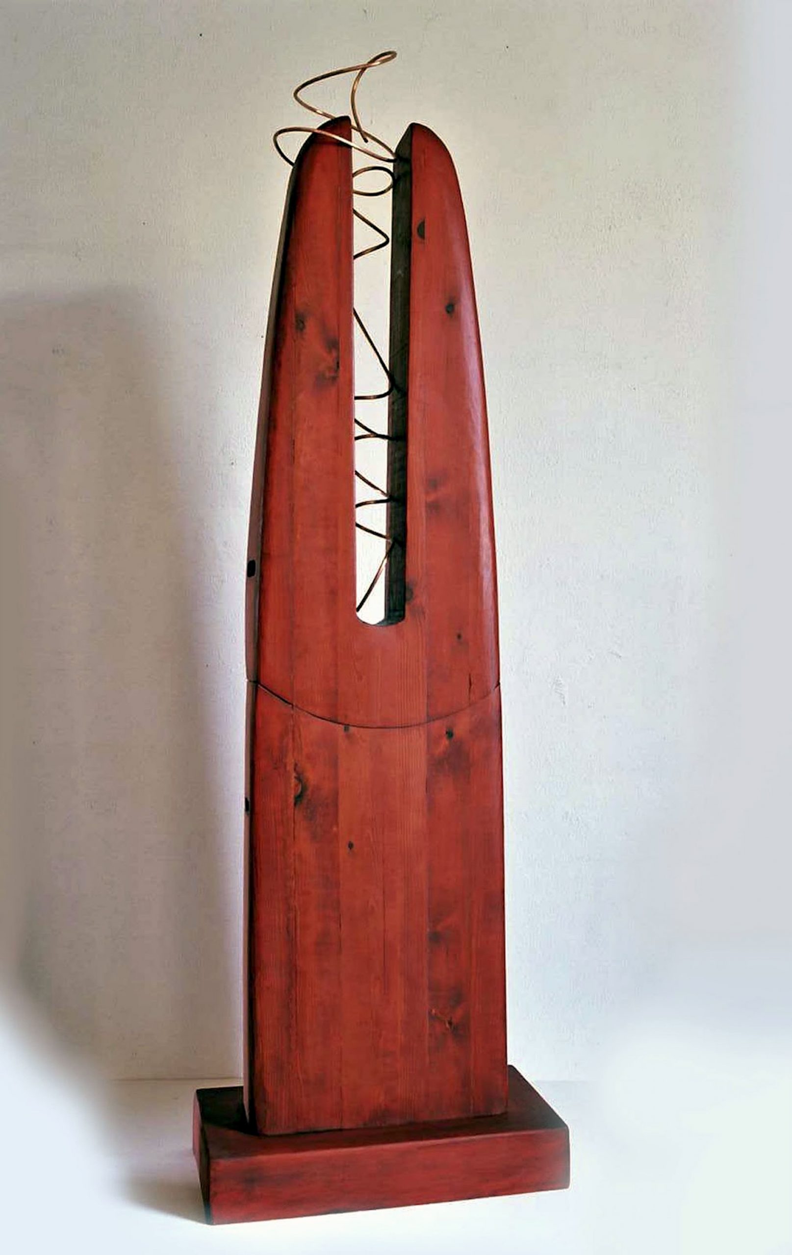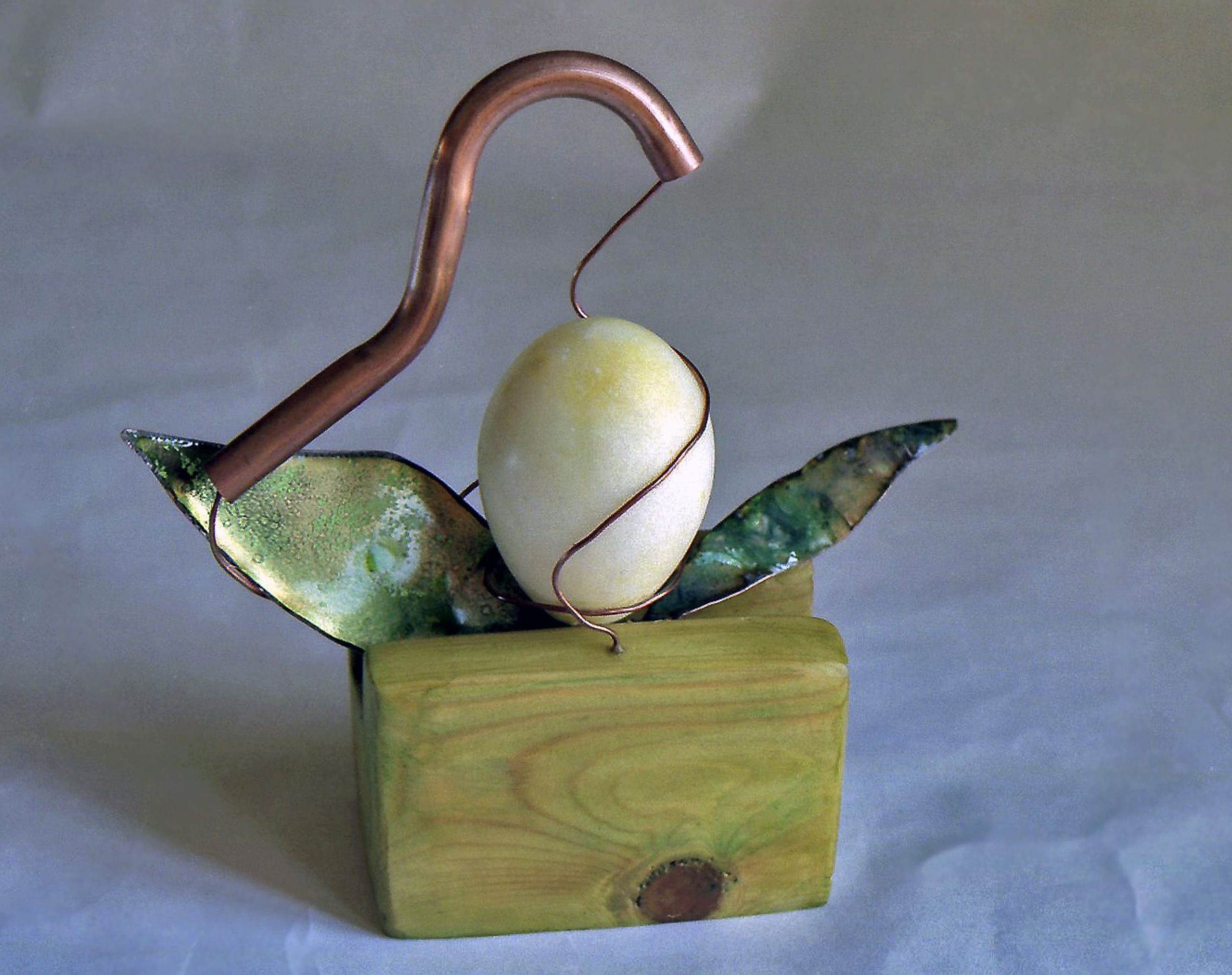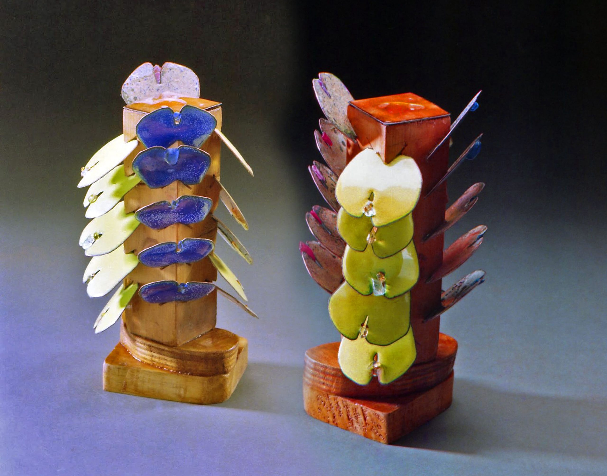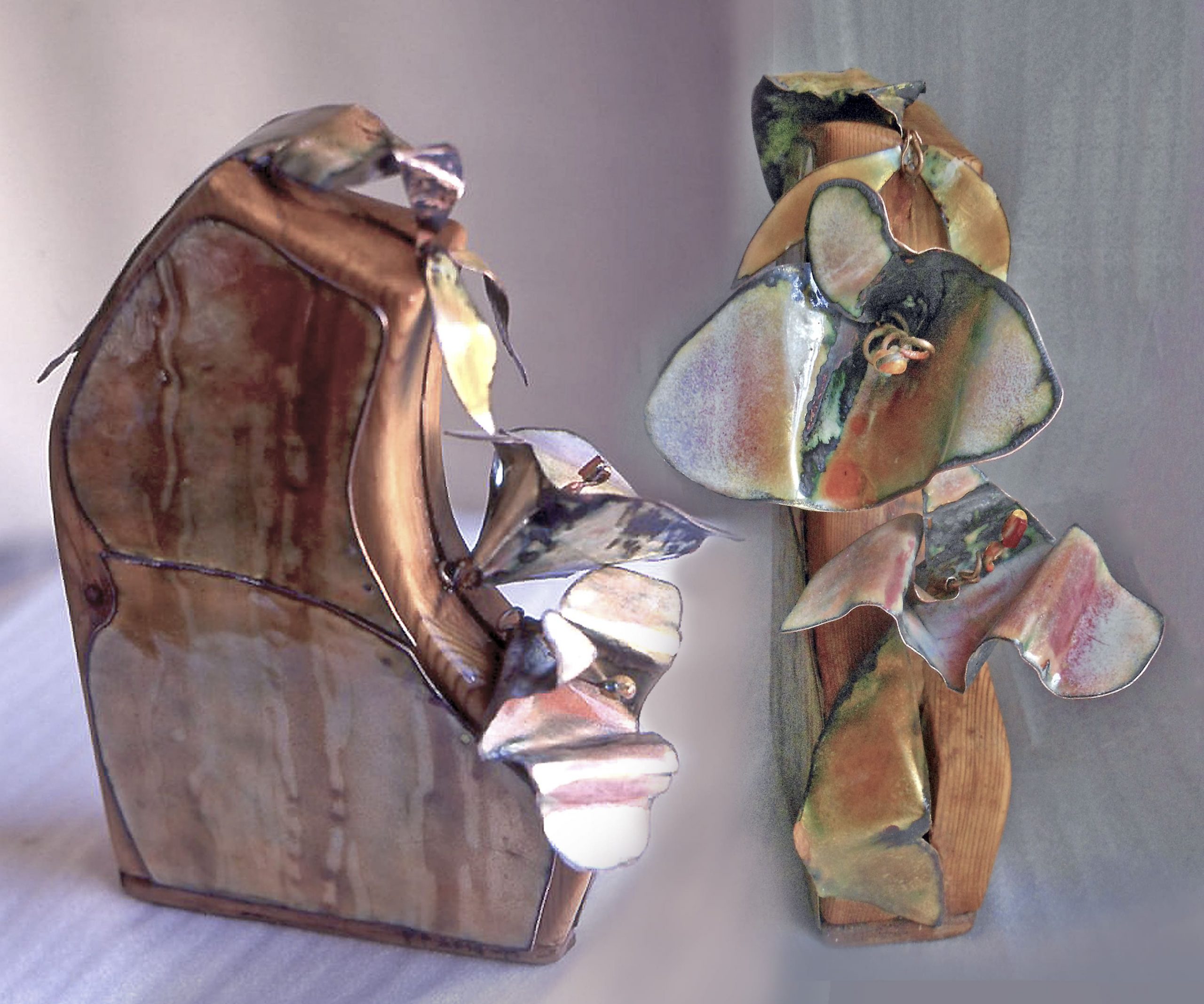 Nº 22. Cambio de aire esmalte sobre cobre y sobre base metalica Altura 98 cm.1994