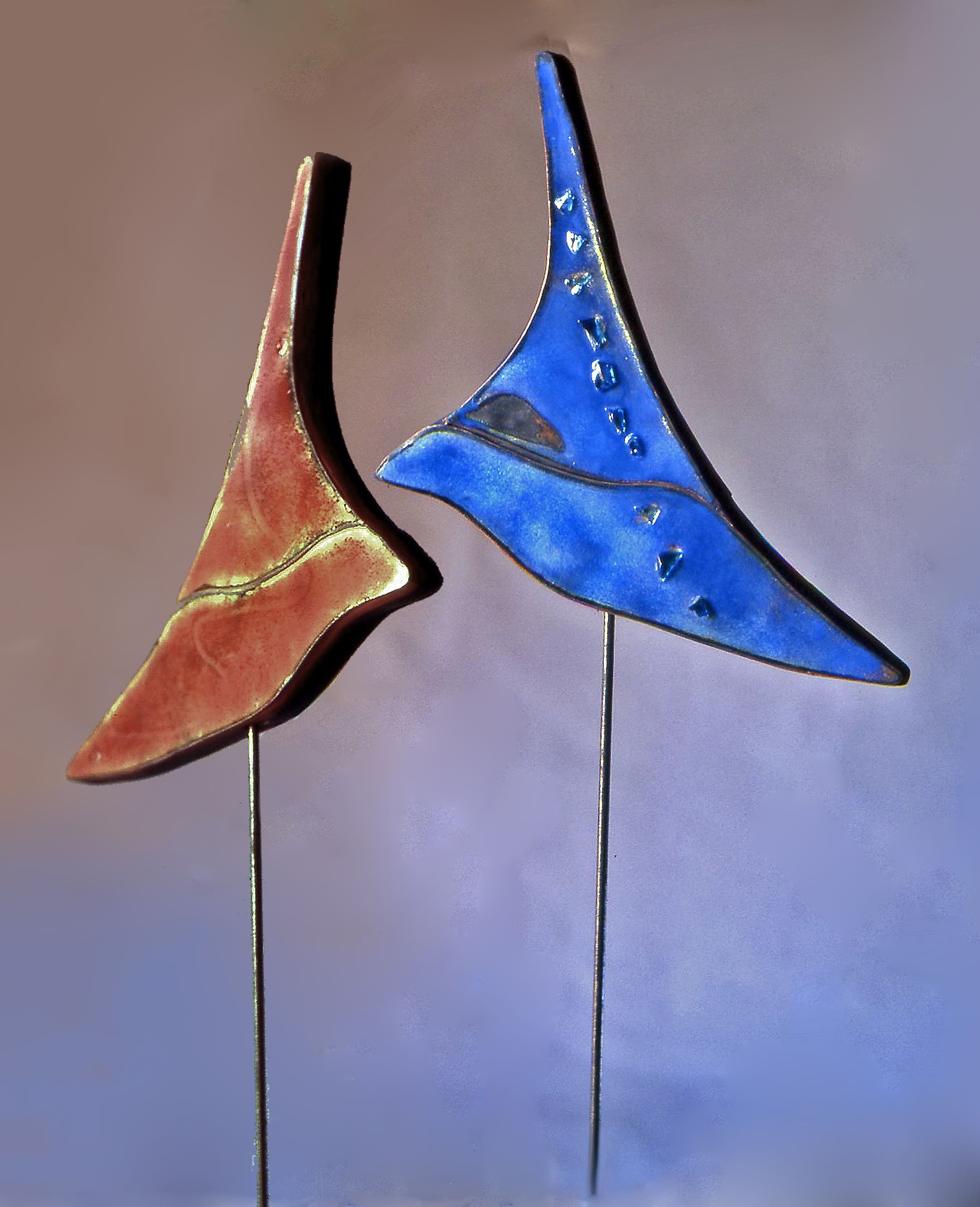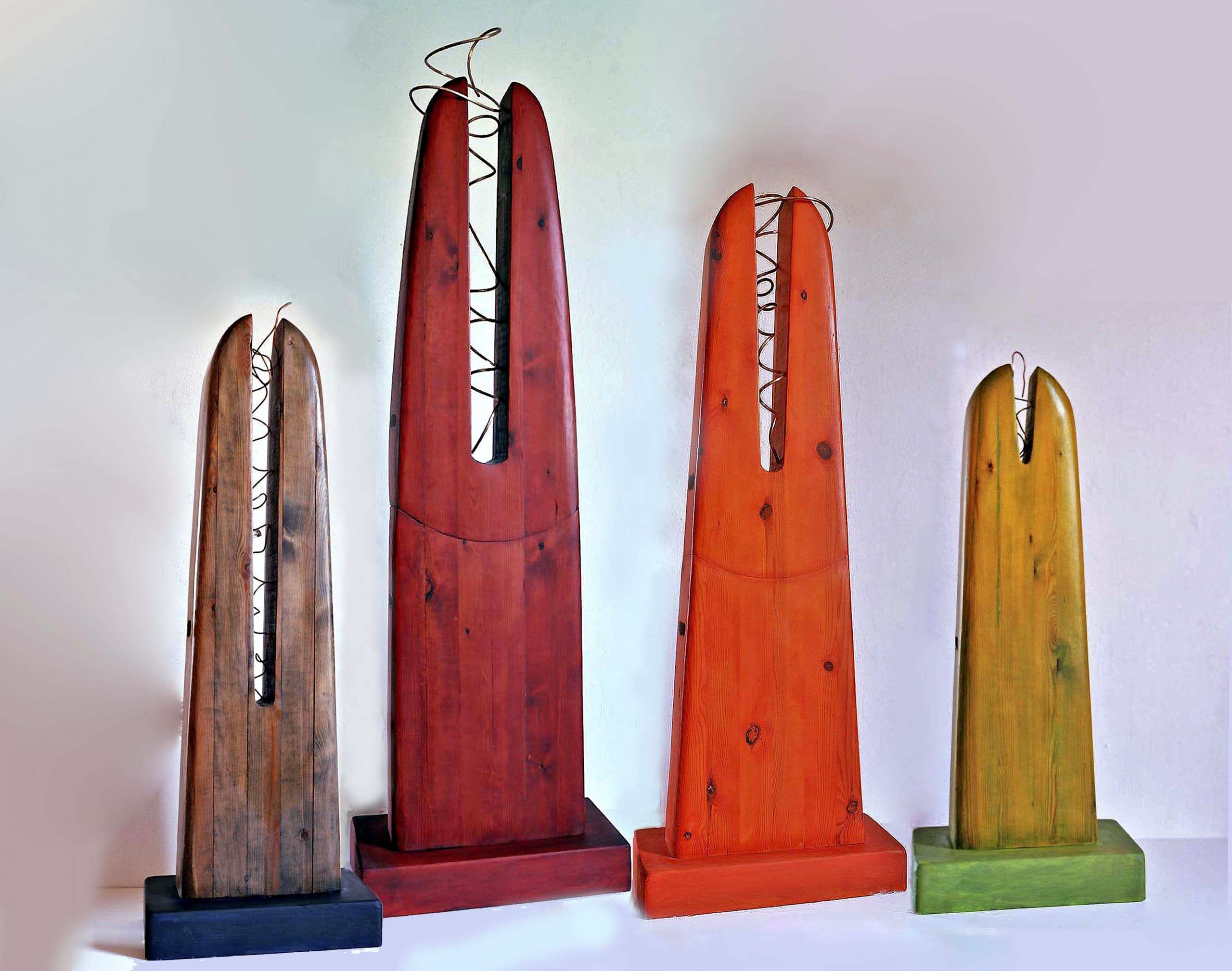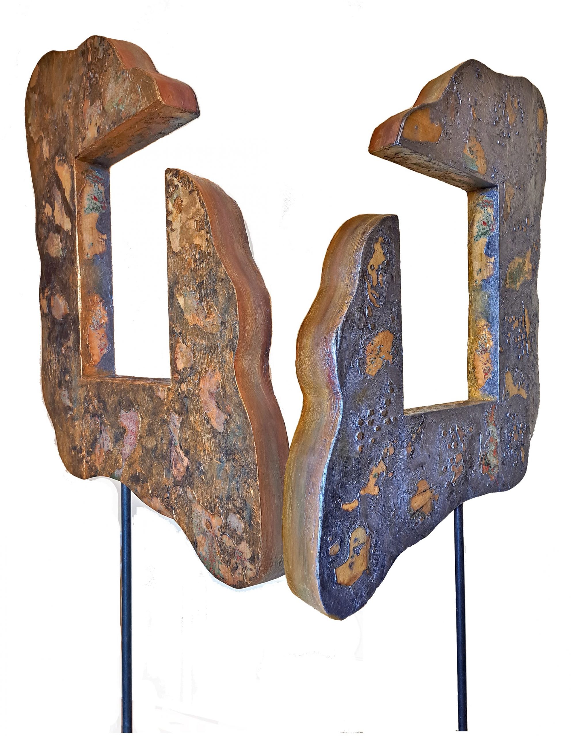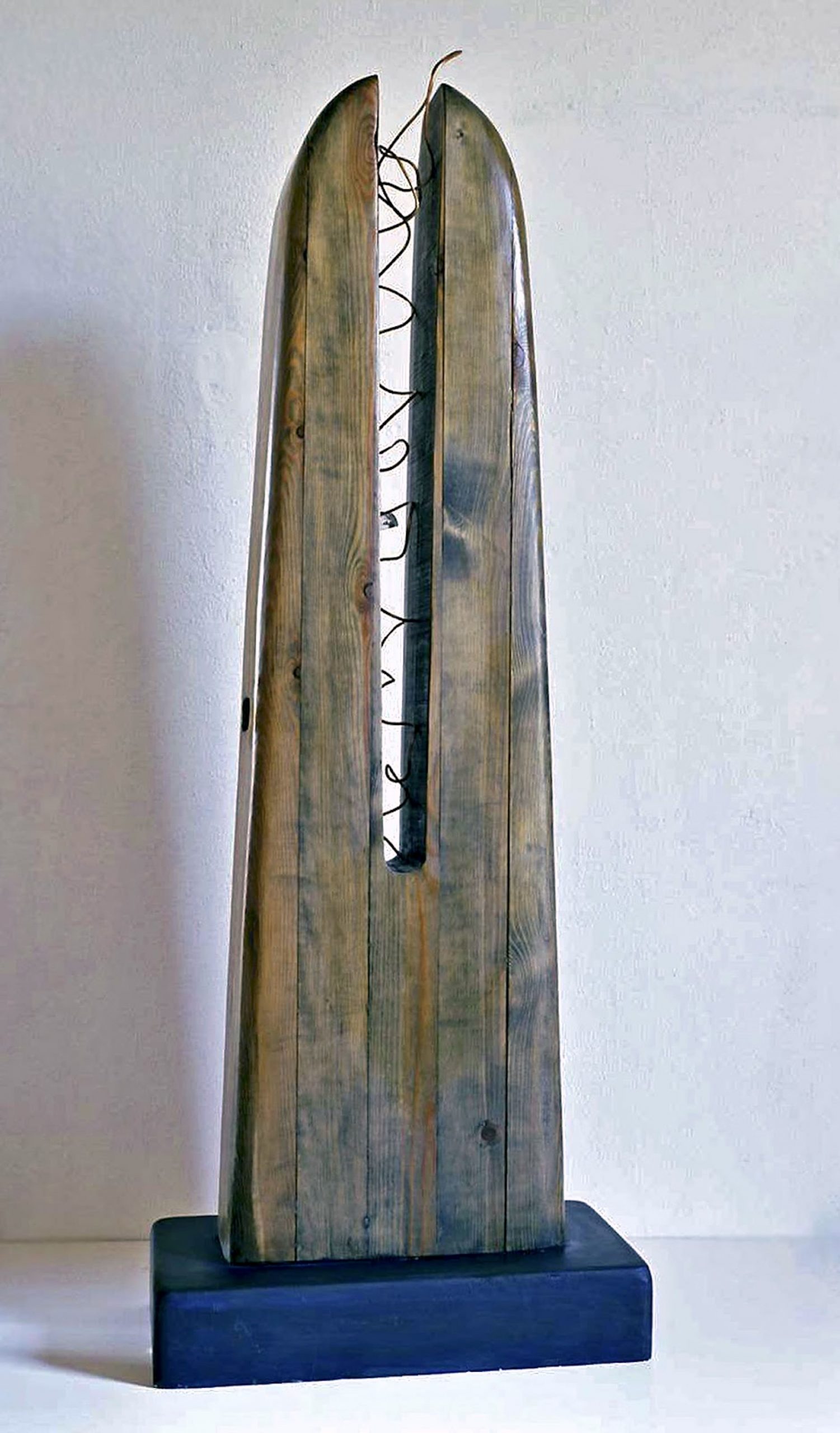 Nº 22. Cambio de aire esmalte sobre cobre y sobre base metalica Altura 98 cm.1994