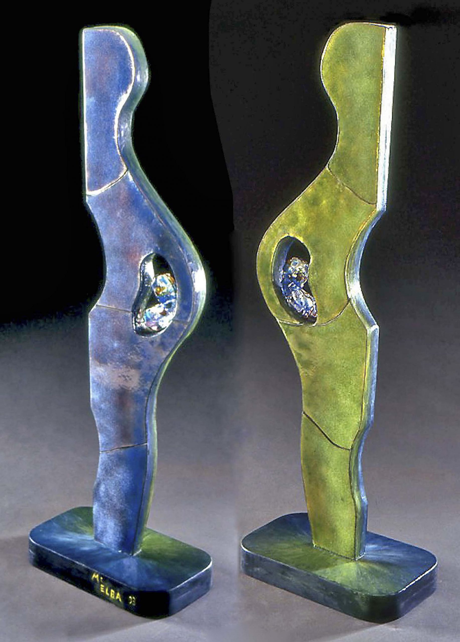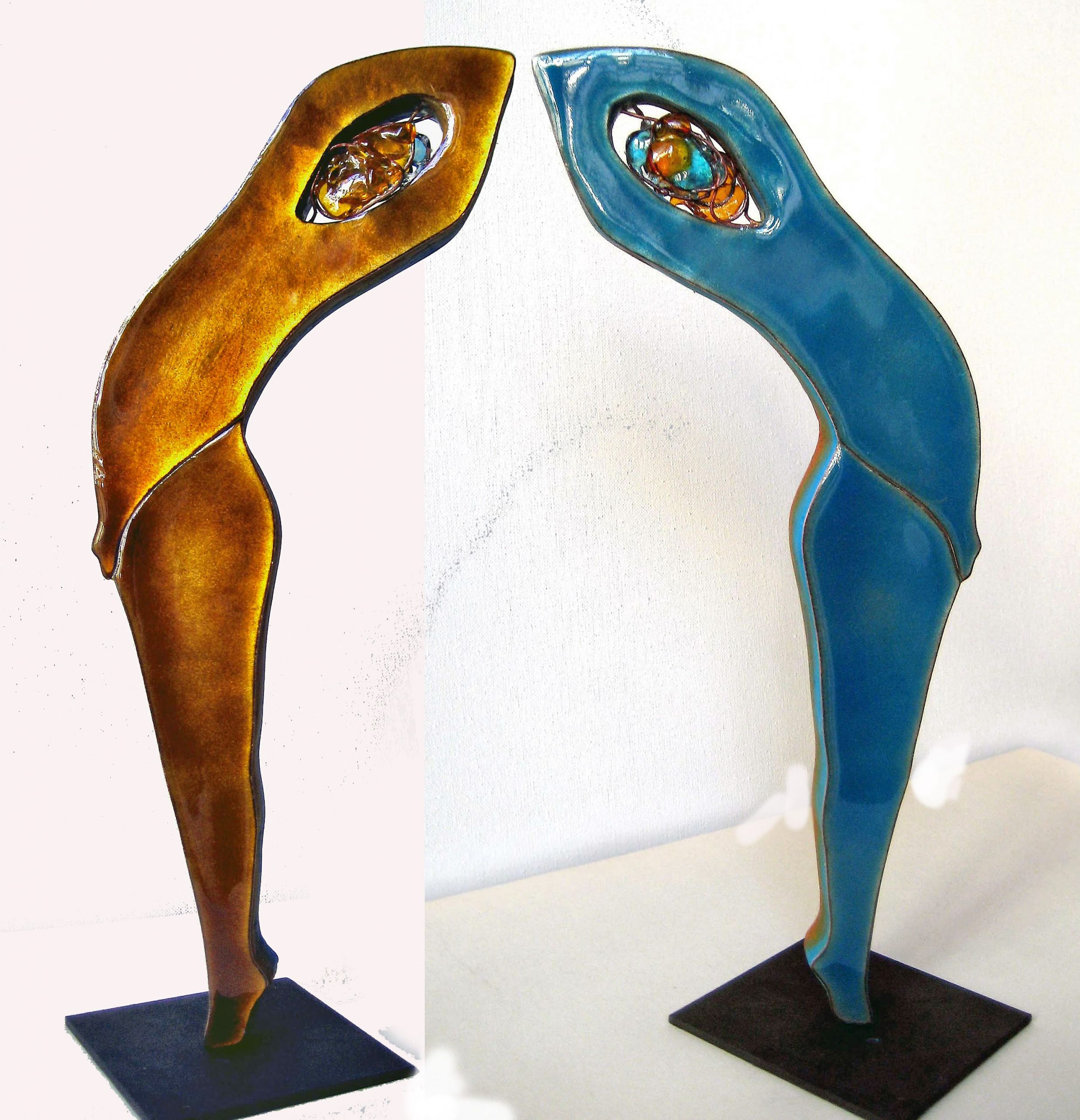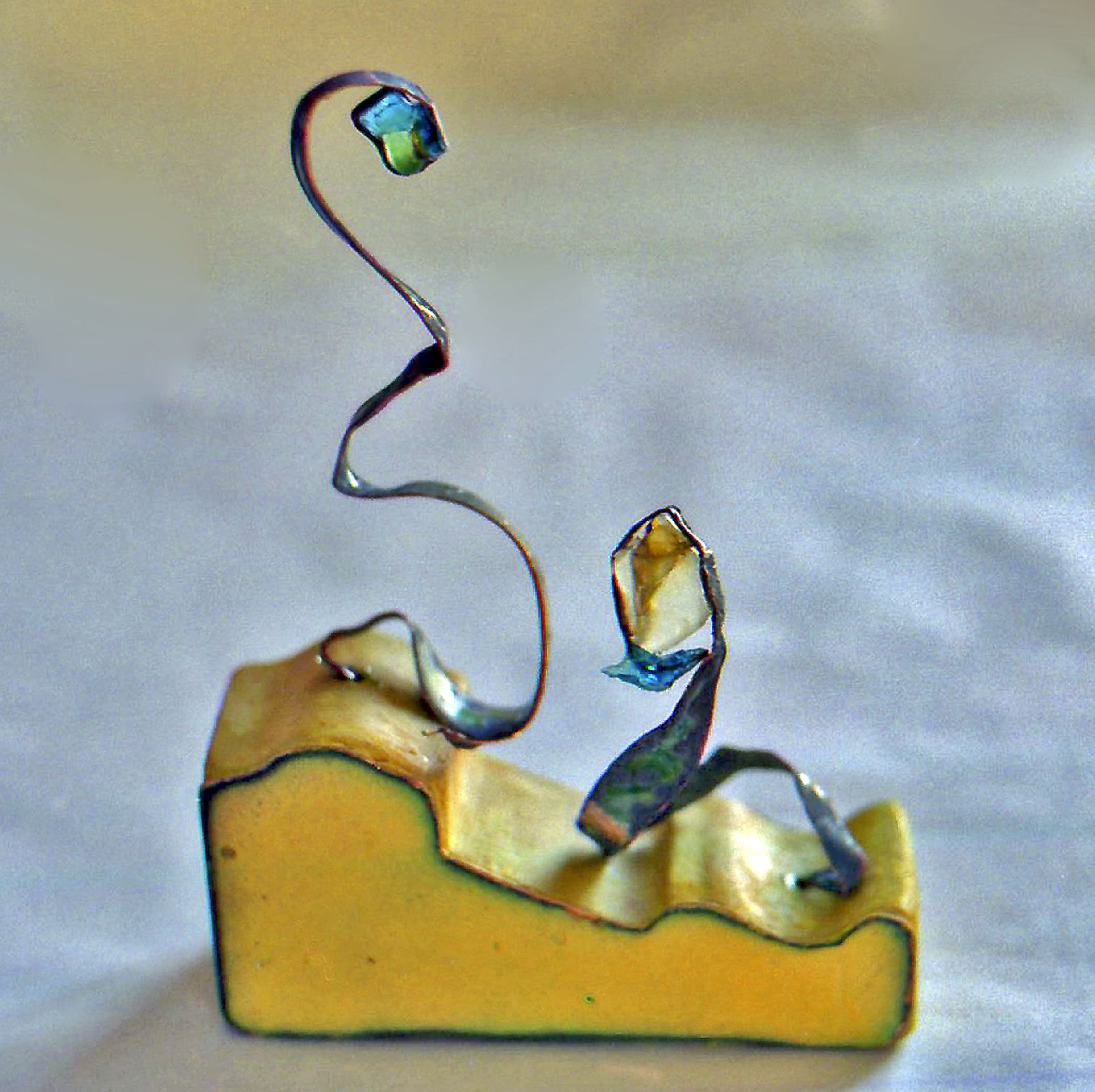 Nº 25. bailarín cara A y B esmalte sobre cobre sobre base madera y metal. Presentada en la 42 Internacional bienal del esmals, en Tokio Japón. 2009