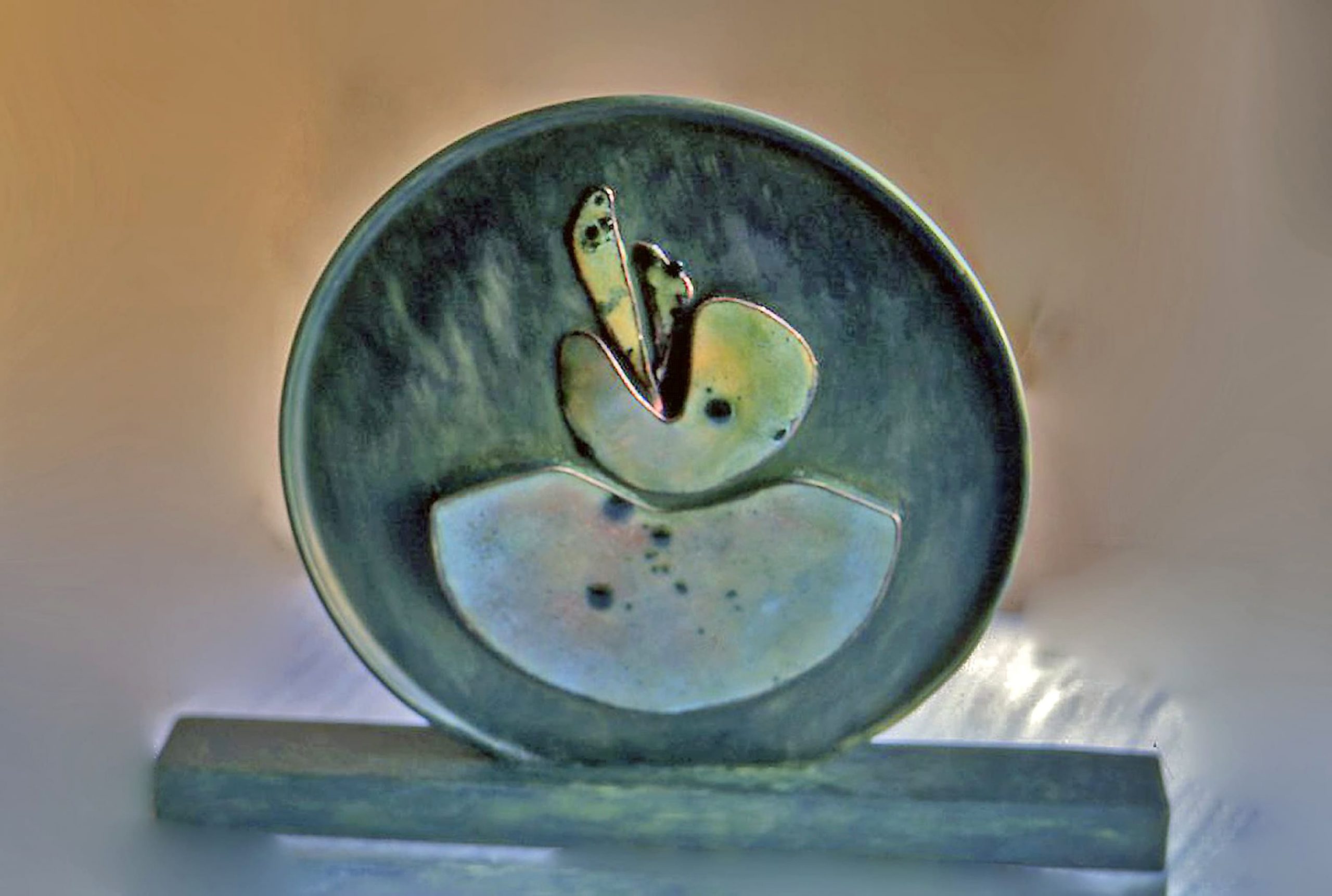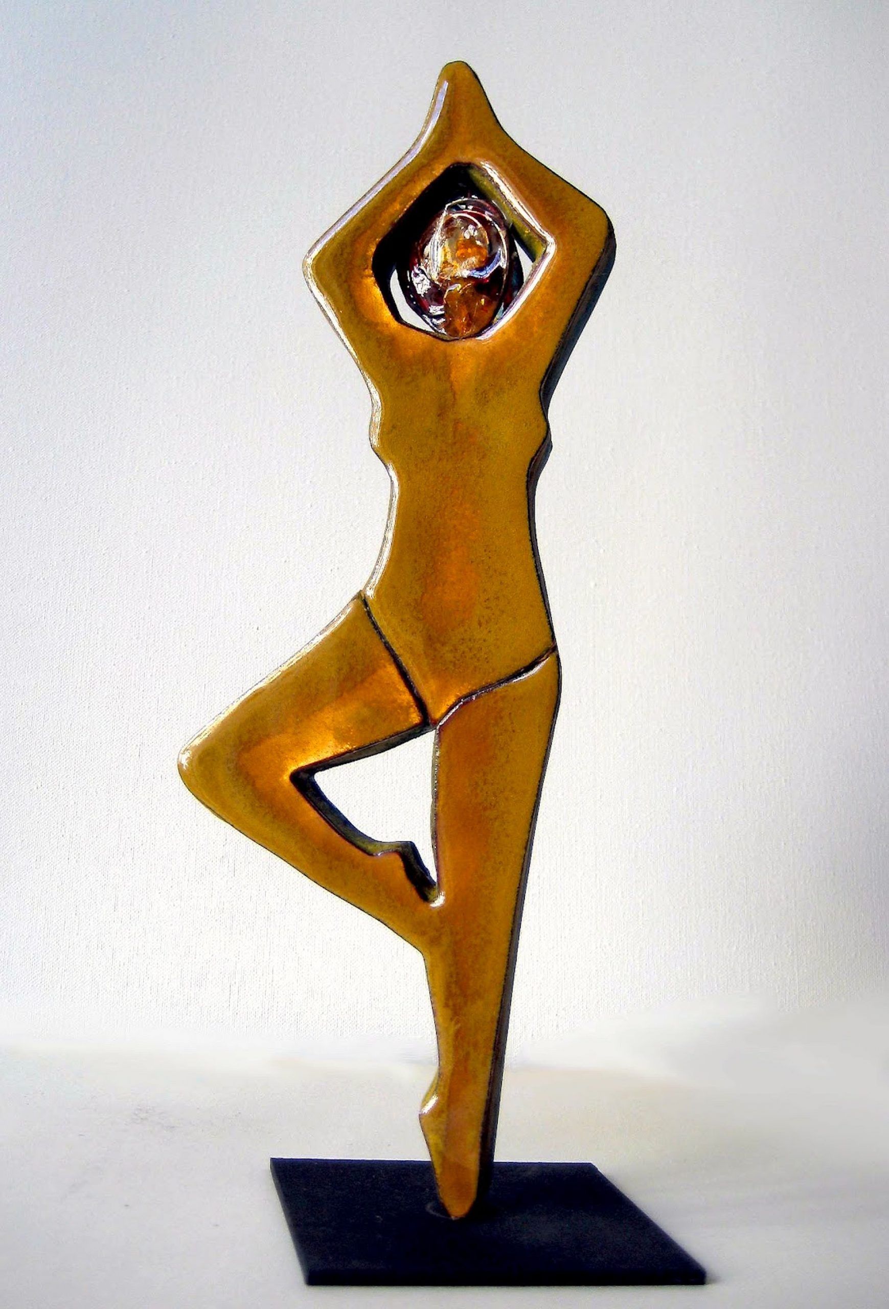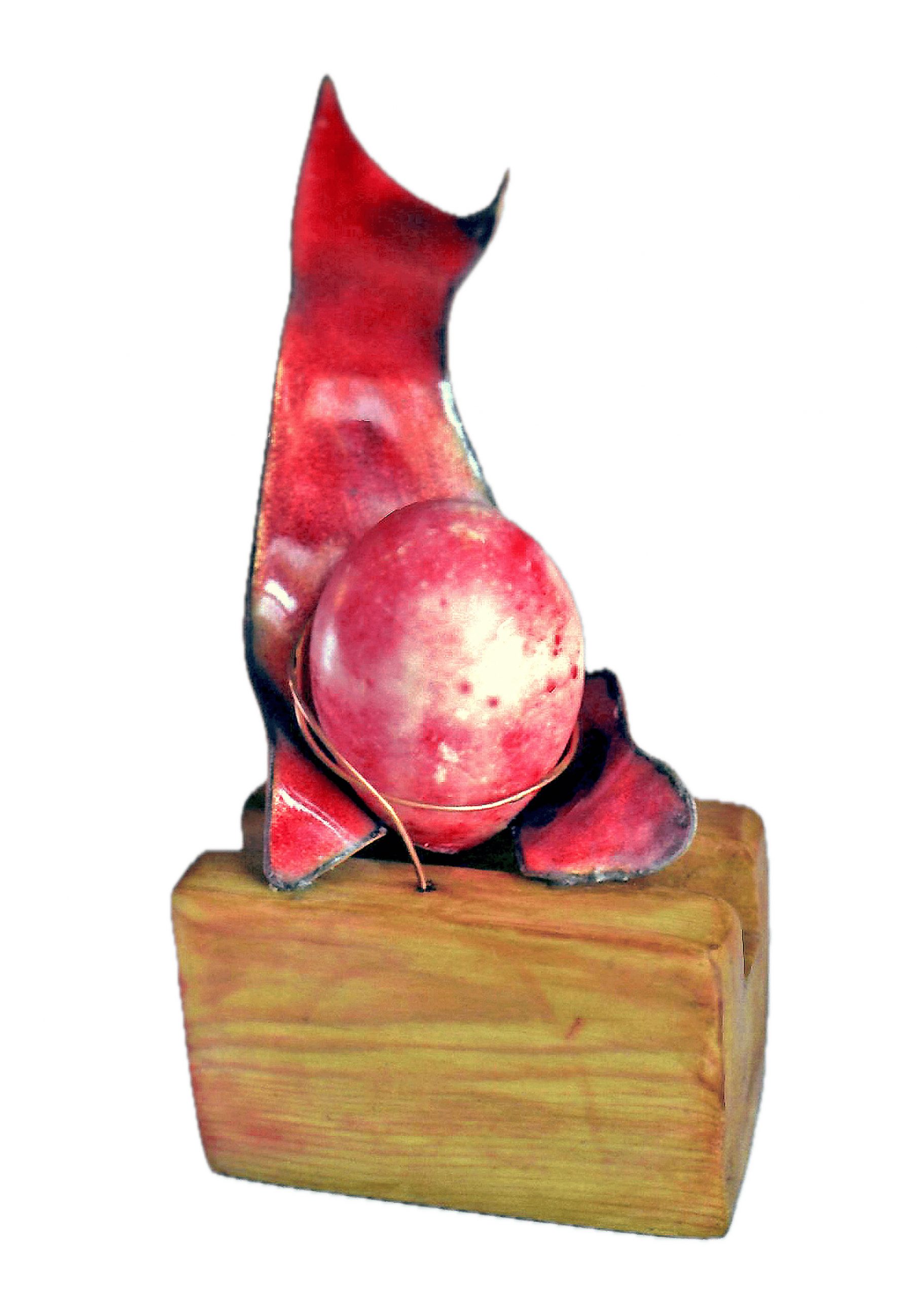 Nº 25. bailarín cara A y B esmalte sobre cobre sobre base madera y metal. Presentada en la 42 Internacional bienal del esmals, en Tokio Japón. 2009